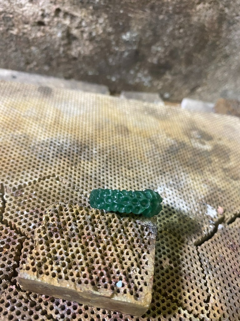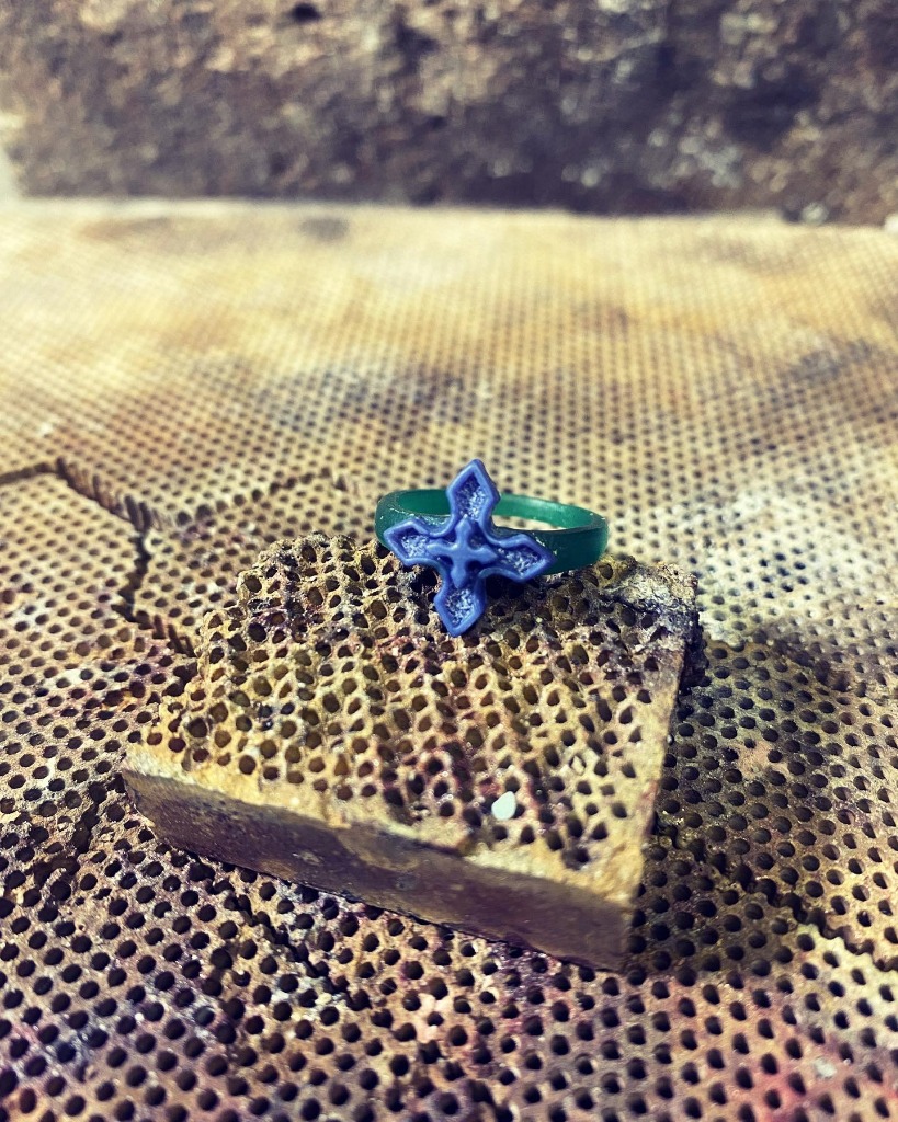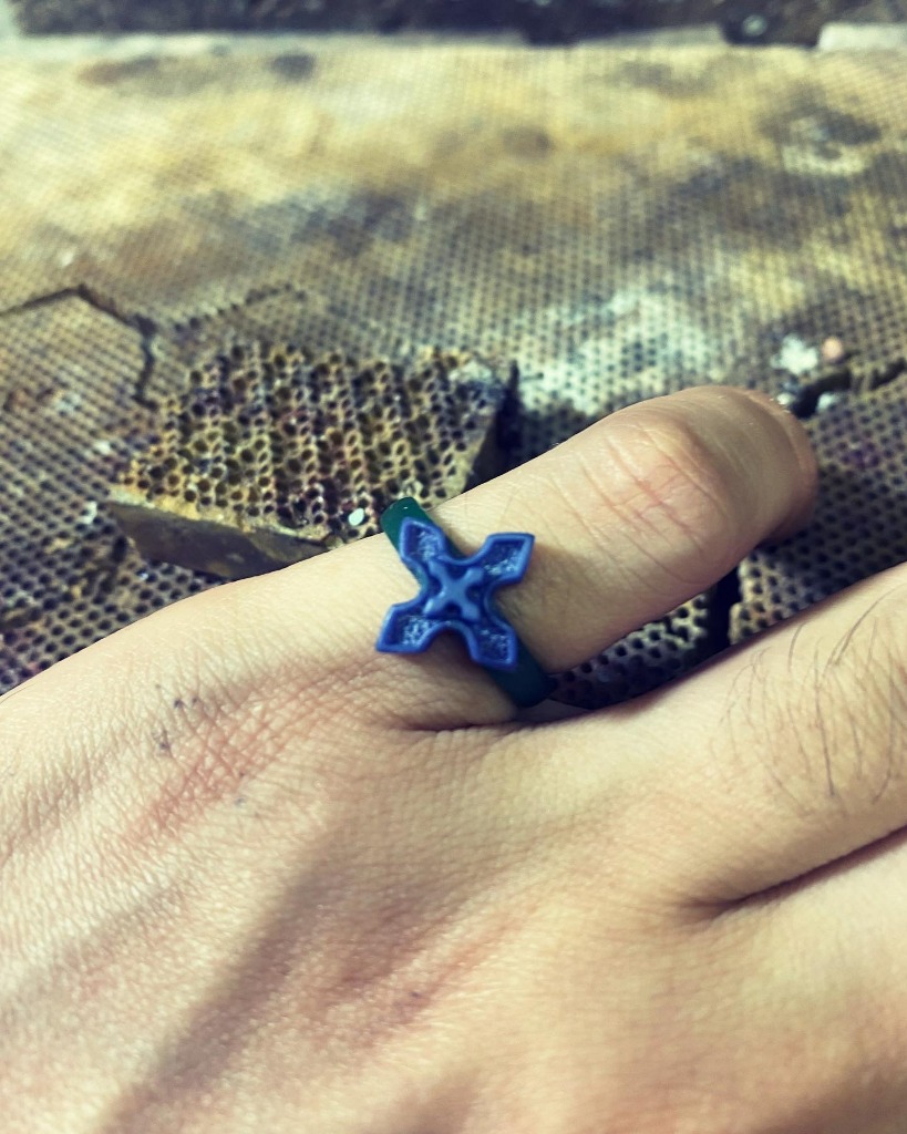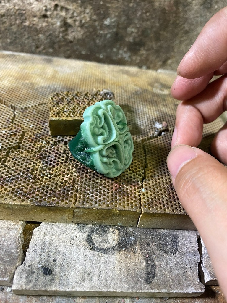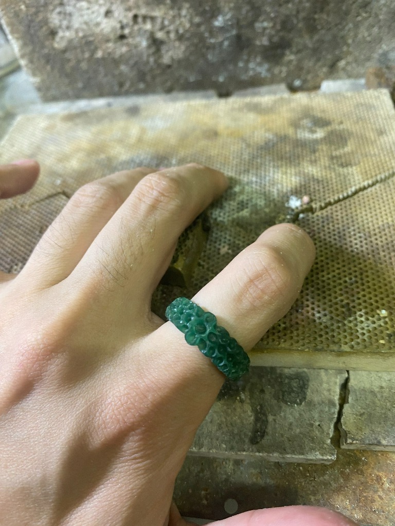 既存のパーツを修正して指輪にしました第3弾です!!今回は大ぶりなパーツを使っての製作で様々な箇所のバランスを整えながら行いました。一体化するためにリング部分との接合や光を通したら薄い部分も多かったので裏抜きのし直しをしたり、サイドを何かしらのデザインがしたいと付けたししたりなどなど・・・色々やっていたら時間がかかってしまいましたw指輪にできる大きさとしてはほぼ限界の大きさかなと感じております。次回も既存パーツの改造を行い、アイテムのラインナップを広げていく予定です。それが一巡したらまた完全な新作を増やしていきたいですね。