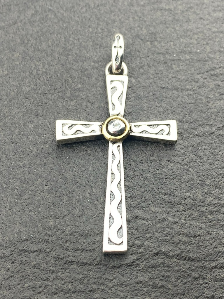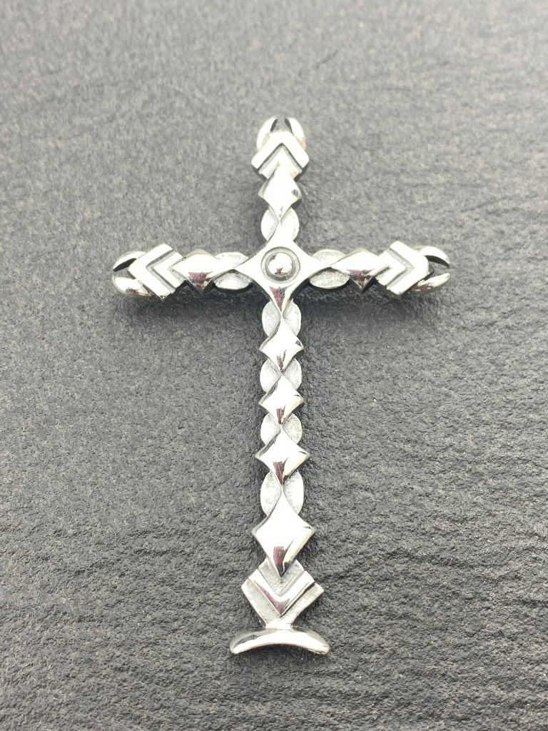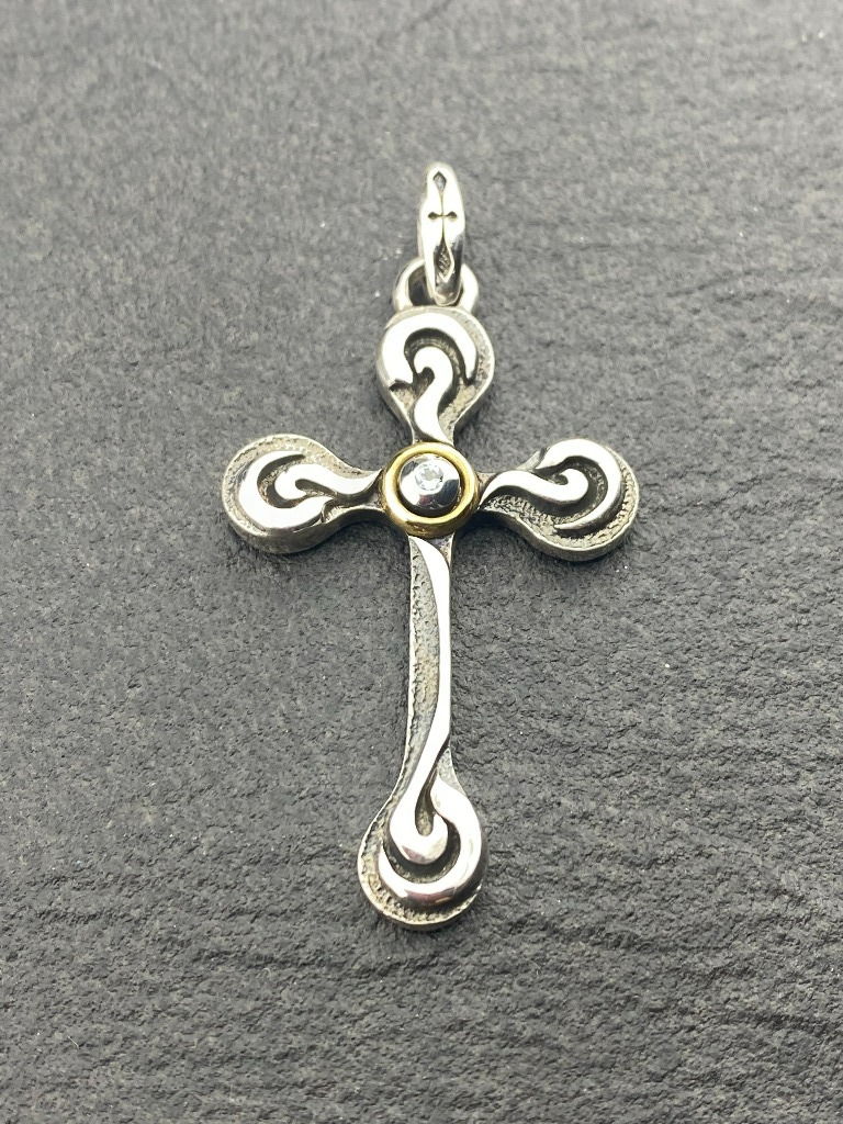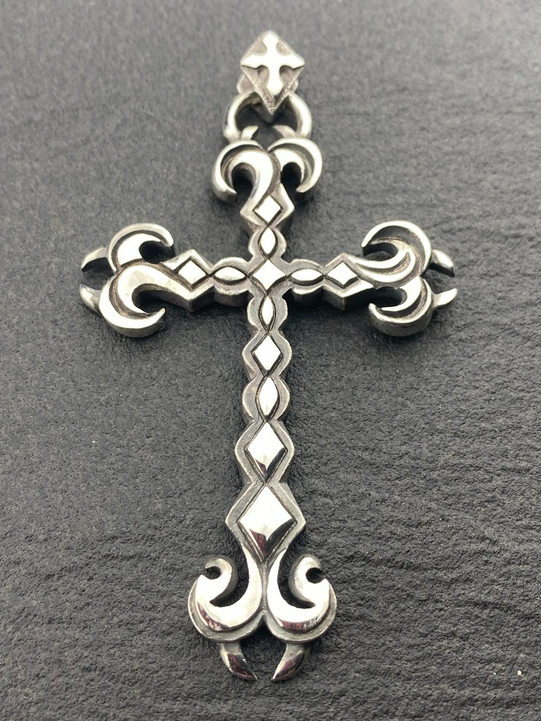 あと2点のアイテムのご紹介です。1点は完全な新作となりますがもう1点はネックレスで使用されているトップ部分のペンダントバージョンとなります。ペンダントトップのみでの販売の要望が多かったため今回販売することに決めました。両者ともブランドらしさを出したエッジの効いたシャープなクロスペンダントとなります。