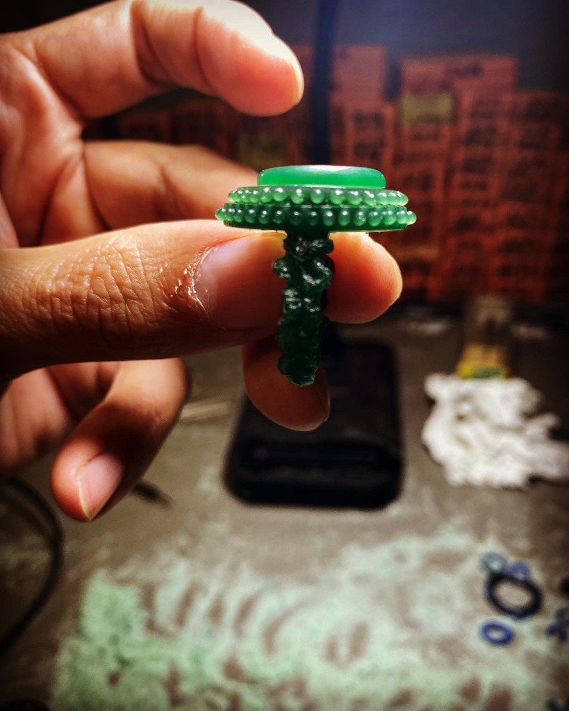 だんだん寒くなってきましたが皆様いかがお過ごしでしょうか?日中、朝夜で寒暖差が激しくなるこの季節お体を壊さないようご自愛くださいませ(>_<)何か久しぶりに新作として載せますが新しい指輪のデザインです。時間がかかった理由として個別にパーツを製作したのと普段慣れてないデザインばかりをあえて挑戦したので時間がかかったというのがあります。中央に月でサイドに(一応)樹木を意識したデザインを施しました。自分自身のデザインの個性はきっちりしていないと気が済まないところの性格もありエッジが尖っている、綺麗な状態にしている、(なるべく)対称性があるというのが特徴にあります。そんな風に頑固に考えていた時期もありデザインしているというよりは設計しているのに近い感覚もありました。ひたすらスケールで細かい単位の寸法がずれていないか、ちょっとでもずれると失敗品を作っているみたいで後で嫌になるなど多々あります。そんな時を過ごしている中で一旦辞めてかれこれ10年以上・・・(´-ω-`)人は年を取ると丸くなるとよく言いますが、丸くなりました(体重的にも( ゚Д゚)(笑))こだわっていたものが実は必要ないことも多々あり、誇りのプライドではなくホコリまみれになっていることもよくあります。デザインに対しての考えの中心にあったものもあえて捨てるというのもありかなーって心境です。私はさそり座ですがよくテーマに破壊と創造という言葉がありますがそんな感じです。(どんな感じ???(;'∀'))綺麗な状態でなければいけないなどなく、あえてぼろぼろチックな風合いも芸術性で考えれば十分ありなはずです。極端な話ものとして形さえあればあとは自由です。昔はよく勉強と称して美術館・博物館巡りをしていました(特に上野公園周辺で)。パスみたいなもの売っているんですよね、確か2000円ぐらいだったかしら??それで割引で色々なところを巡り様々な芸術品に触れていきました。美術館巡りって集中して作品を見るからあまりハシゴして巡れないんですよね。時間もかかるし疲れますしね。私は芸術品のルーツなどに詳しくはないので自分なりの考えしか言えませんが絵画の場合は芸術品を製作するだけではなくその当時の風景などを模写して後世に残すという役割の側面もあります。とにかくいつも感じているのが風景の精巧な模写も技術的に素晴らしく綺麗で写真見ているみたいで凄いのですが特に惹かれないんですよね。やっぱりオリジナリティがないのだからでしょう。好きなのはたとえばモネだとかゴッホだとかピカソだとか自分の個性を余すことなく発揮している個性の主張が強いものが好きです。でも意外とそういう作品って細かい部分みると結構適当というか荒っぽいというのか精巧ではないことが多いんですよね。そんな好みがあるからなのかあくまで自分自身の意見なのですが何かのモチーフをそのまま精巧に作っているものにはあまり惹かれなかったりします。そこに自分自身のこうしたいとか(ある意味欲望??)あーしたいとかをどうしても加えてしまうので大体私が作るものはリアル重視ではなく結構かけ離れたものになってしまうことが多くあるみたいです(笑)と、話が勝手に脱線して長くなってしまいましたが(笑)、まぁーそういう考えが根底にありながら作ってるみたいです。ちなみにめっちゃえええやん!!って思っているのがロダン作の国立西洋美術館にある地獄の門が大好きです(*^▽^*)次回は月を作ったら太陽を作りたくなったのでこの指輪の太陽バージョンと後一旦練習もかけて前の大きい月の太陽バージョン作りたいなぁーって思ってます。後この指輪のペンダントバージョンとか、今回試した樹木っぽい雰囲気で指輪とかペンダントとか色々作りたいなども考えておりしばらくは何を作るのか?に困ることはなさそうです(笑)(''ω'')ノってやっぱり長文になってしまった・・・・(;´・ω・)(;´・ω・)